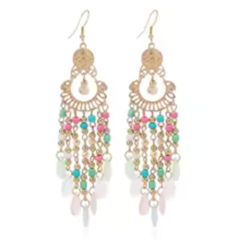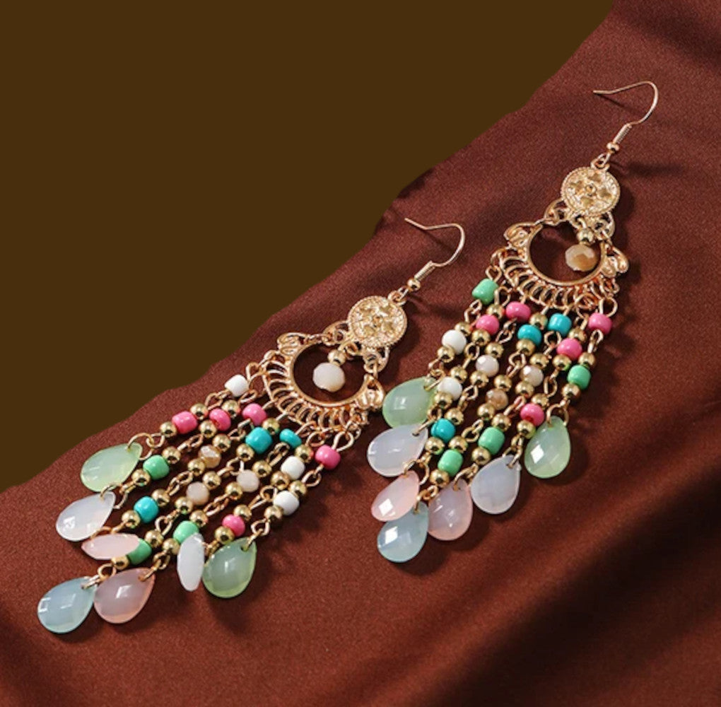 Drape your look in vibrant color charm with these stunning Multi-Color Beaded Tassel Earrings. Featuring a dramatic, cascading design, these long dangle earrings combine a gorgeous mix of pastel and jewel-toned beads with teardrop accents.
