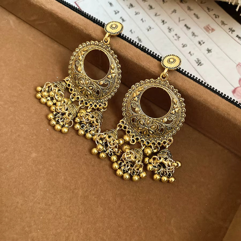 Antique Gold Ethnic Style Long Hollow Bell Tassel Traditional Jhumka Earrings
