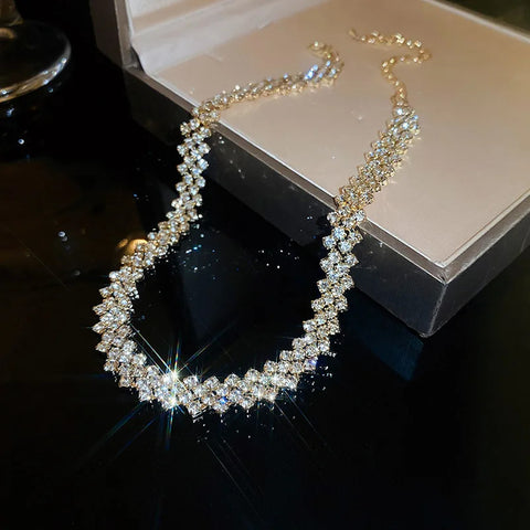 Illuminate your most special evening with this exquisite and dazzling golden crystal necklace. Raise your fashion quotient with this ultra modern and stylish choker style statement necklace.