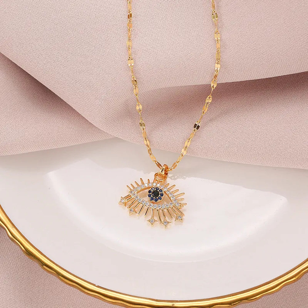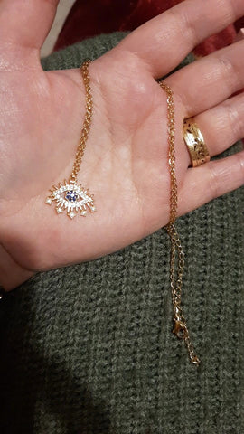 This simple beauty is versatile and fit for everyone. This Gold plated thin chain necklace with small evil eye pendant will bring extra shimmer to your style. Let it be your modern day talisman of good fortune. An elegant fusion of culture and modernity to express yourself with standout pieces that make a statement.